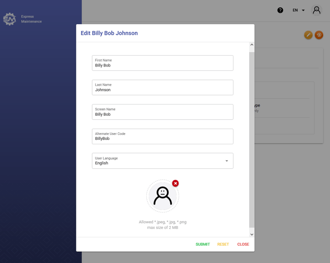 - Site Admins have these same options as well as the ability to change User Type, Status, and the ManuMax Products they can access.