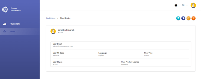 Customer Users: Displays all users belonging to the company database within your account. -