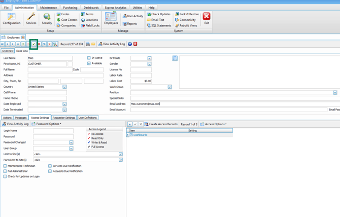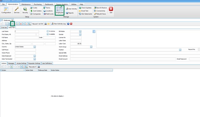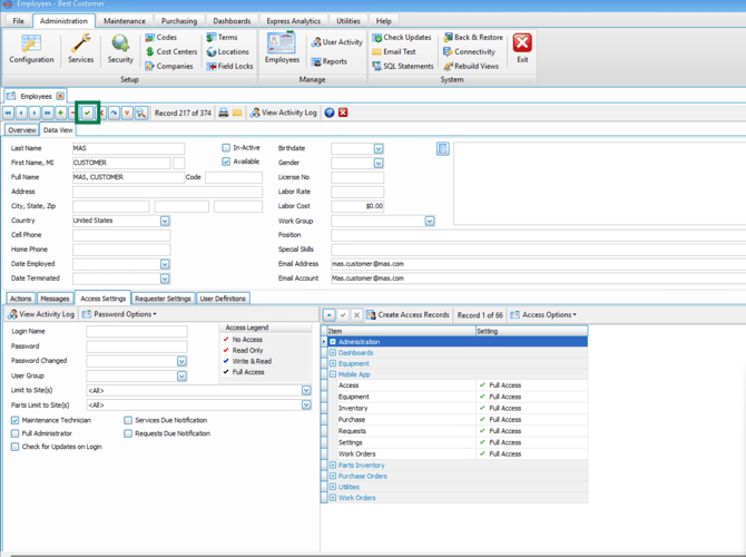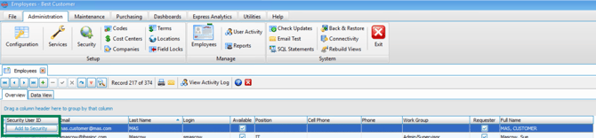 All ManuMax EM users must be set up in the ManuMax EM Employee Table as outlined below.