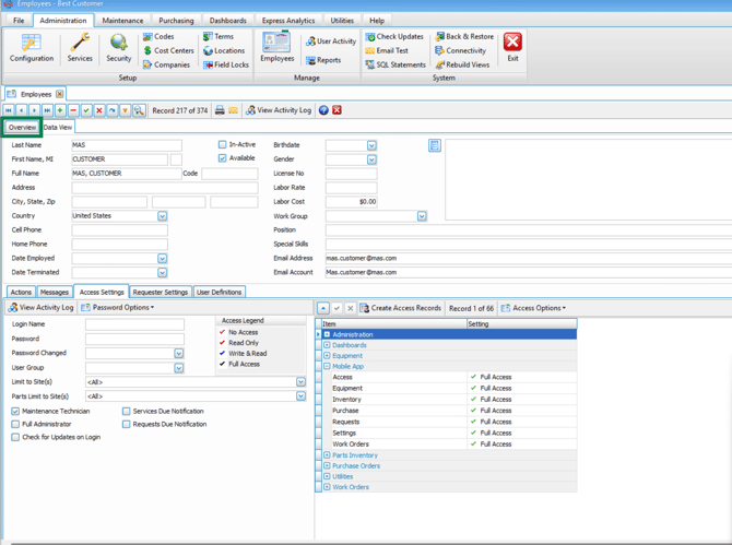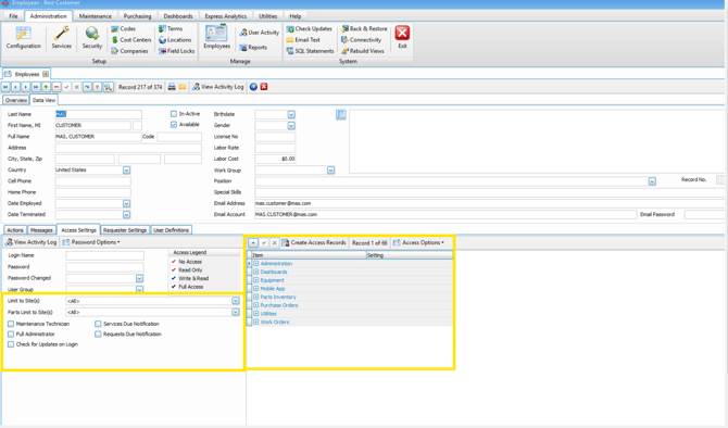 Access Type determines what ManuMax option users can access.