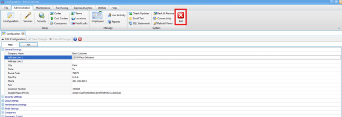Log back in to ensure the new address appears correctly on Work Orders and Purchase Orders.