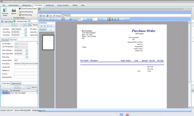You can configure ManuMax EM to include your company’s address on Work Orders, Reports, and Purchase Orders.