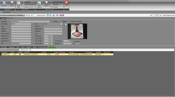 - Once the Work Order is closed, you can access the part’s usage history in the part’s record in Express Maintenance.