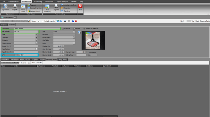 In Express Maintenance: Create the part with a description, part number, and UPC code (See “Troubleshooting UPC Codes” below if you need help getting the UPC.)Add the Part to a Work Order in Express Maintenance Mobile