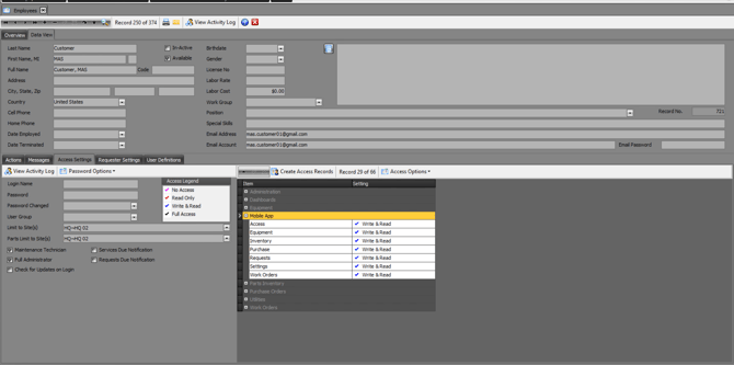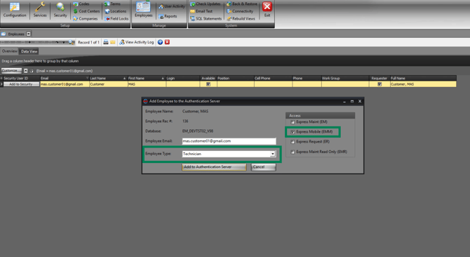 Like all Express Maintenance users, mobile app users will need to be added to the employee table with their full name and email address.