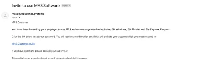 - You’ll receive an invite from MASDEVOPS with a password reset link.